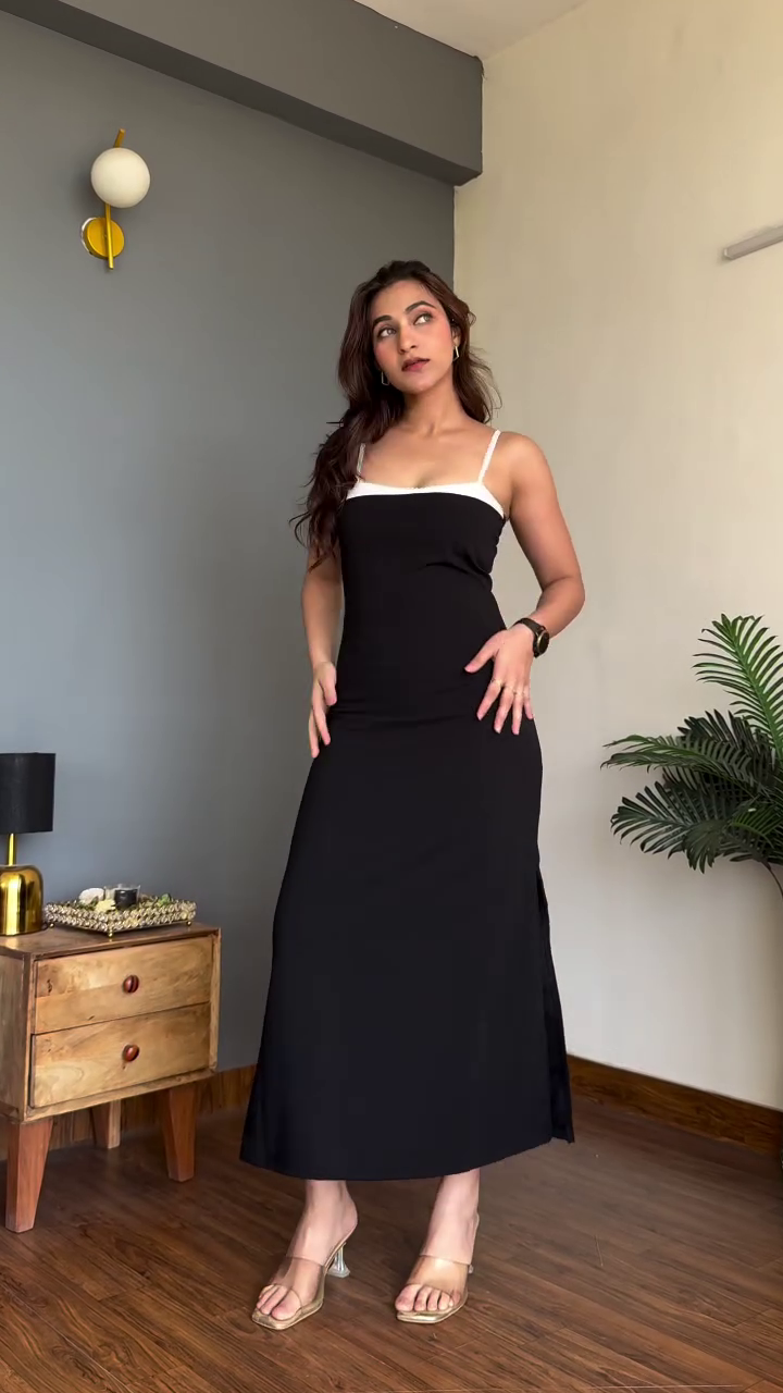 Step into effortless sophistication with this stunning Black Slip Midi Dress, designed for a sleek and modern look. Featuring a clean silhouette with delicate contrast straps, this dress brings a perfect balance of minimalism and elegance.