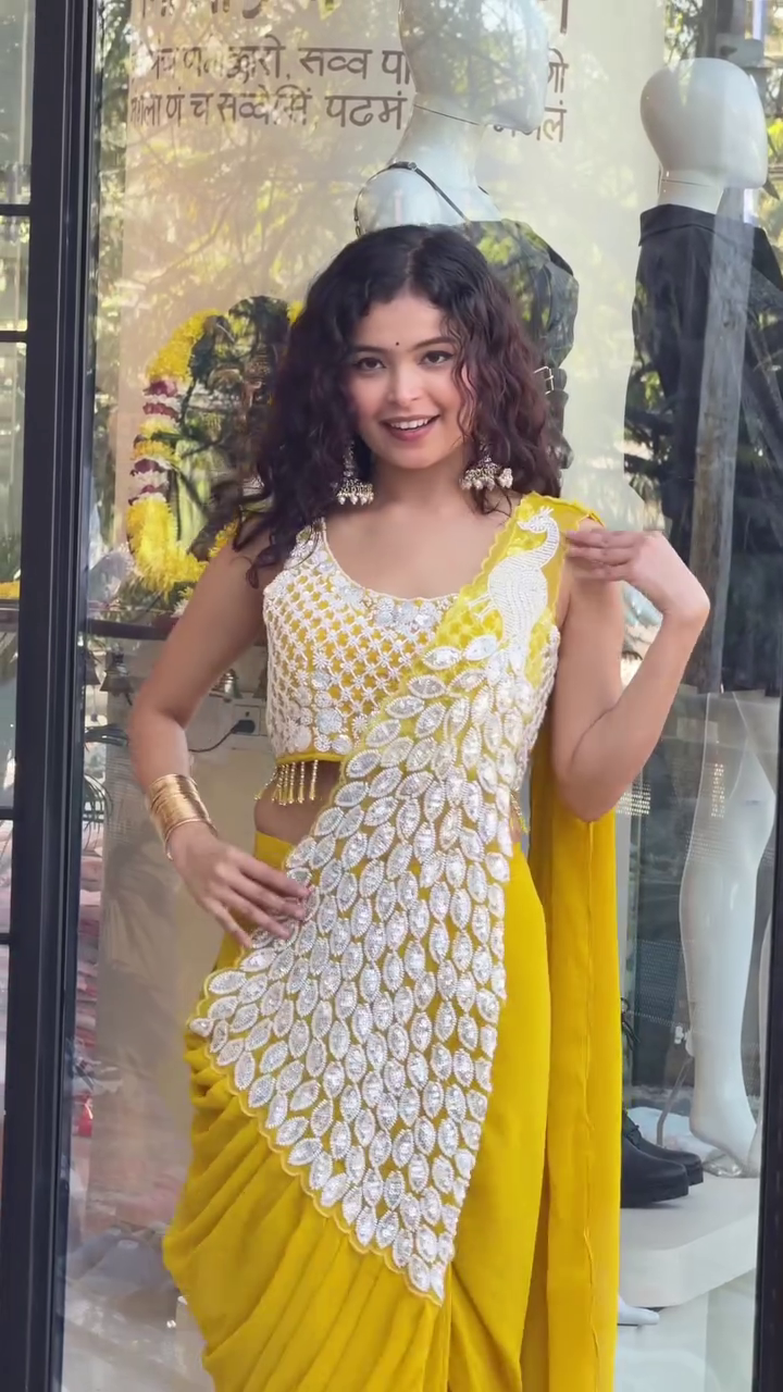 This yellow embroidered saree is not just an outfit—it’s a statement of elegance, tradition, and confidence. The shimmering mirror work and intricate embroidery elevate the overall design, making it look premium and luxurious. The bold yet graceful color ensures you look radiant in photos and in person, making it ideal for social media, special events, and memorable occasions.