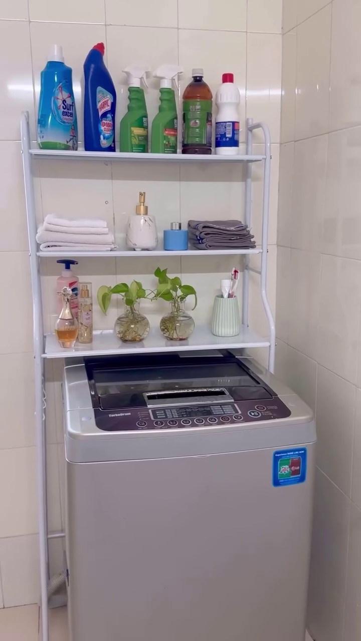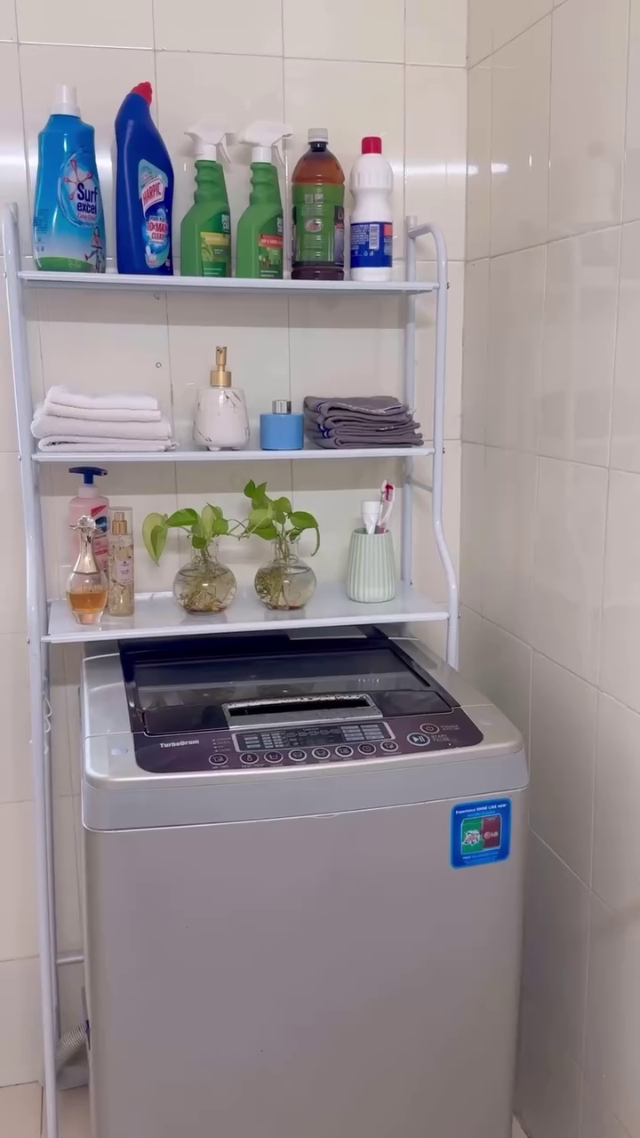 A practical and space-saving 3-tier storage rack designed to fit neatly over your washing machine, maximizing vertical space in compact laundry areas. Built with a sturdy metal frame and durable shelves, this organizer provides ample room for detergents, fabric softeners, cleaning supplies, towels, and toiletries.