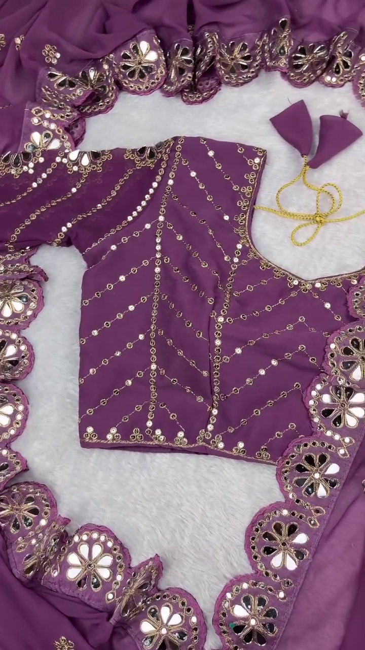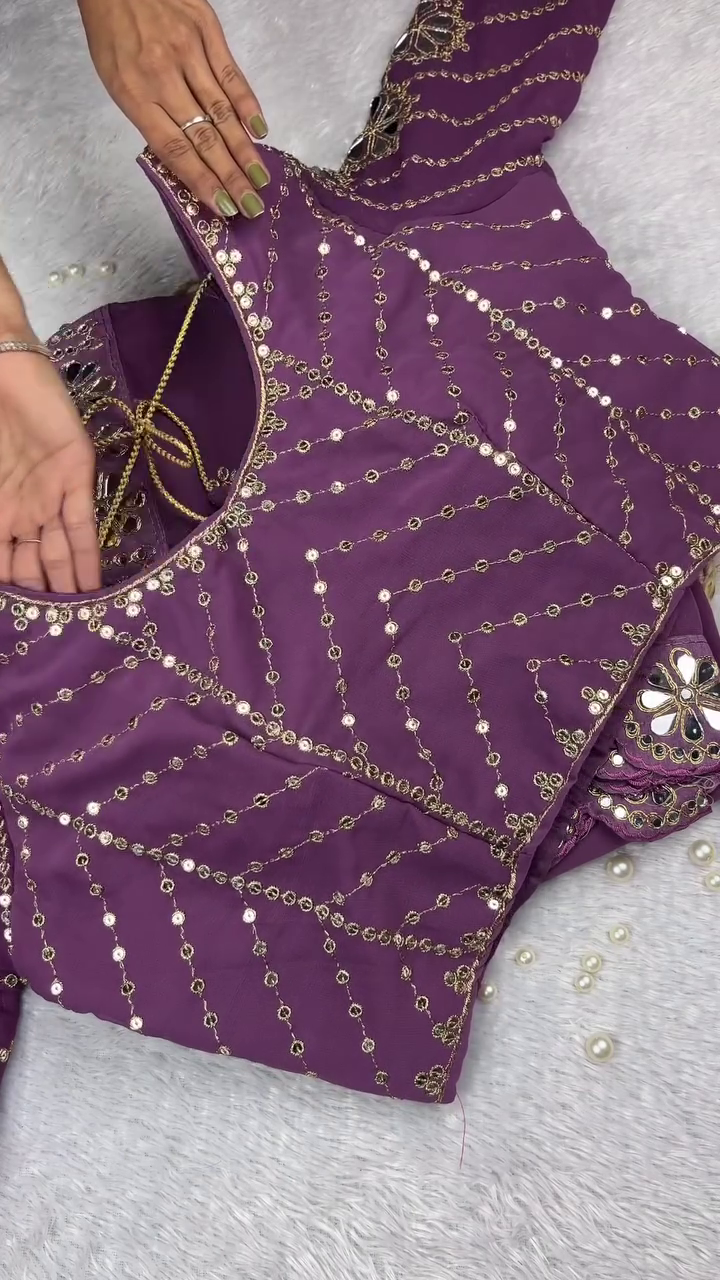 Elevate your ethnic wardrobe with this Royal Purple Embroidered Mirror Work Blouse, a stunning designer piece crafted to add luxury and elegance to any saree or lehenga ensemble. This blouse is perfect for weddings, festive celebrations, parties, and special occasions where you want to make a graceful yet glamorous statement.