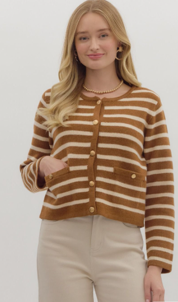 Women’s Brown & Cream Striped Button-Up Cardigan