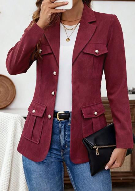Women’s Burgundy Button-Front Utility Blazer