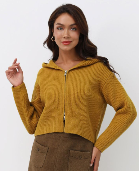 Women’s Mustard Ribbed Knit Zip-Up Hoodie
