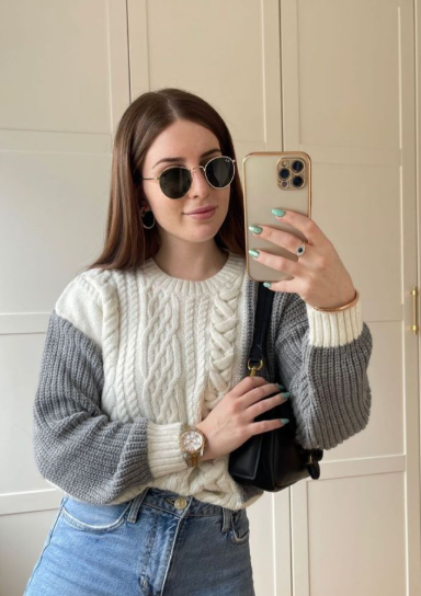 Women’s White & Gray Colorblock Cable-Knit Sweater
